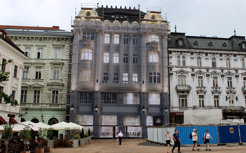 poisťovňa Kooperativa (ako vlastník budovy) plánuje do doby obnovy historickej fasády na poškodenej budove v súčinnosti s hlavným mestom,