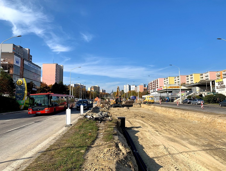 Priamo na električkovej zastávke sa začal budovať jazdný pruh pre autobusy. Tie budú po novom zastavovať s električkami spoločne na jednom mieste.