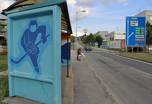 Na Harmincovej ulici sú dva prístrešky zastávok MHD, ktoré nie sú „štandardné“, ale originálne, s jedinenčným náterom. Jeden z pomaľovaných prístreškov reflektuje zimný šport, ktorý tu má svoje zázemie.